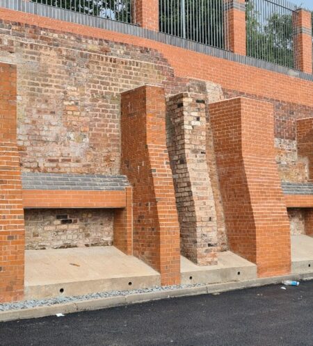 Link were appointed by the client to carry out remedial works to a historic masonry retaining wall at their Ablewell Street site in Walsall. The wall required essential works to restore the structural integrity of defective areas and was strengthened with new structural elements.