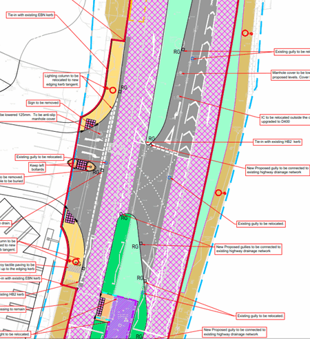 The Section 278 design was interesting as it had a variety of items that put our highway team to the test. From Signal Crossing, opening of a central reserve to allow right in and right-out movements and narrowing & widening of carriageway.
